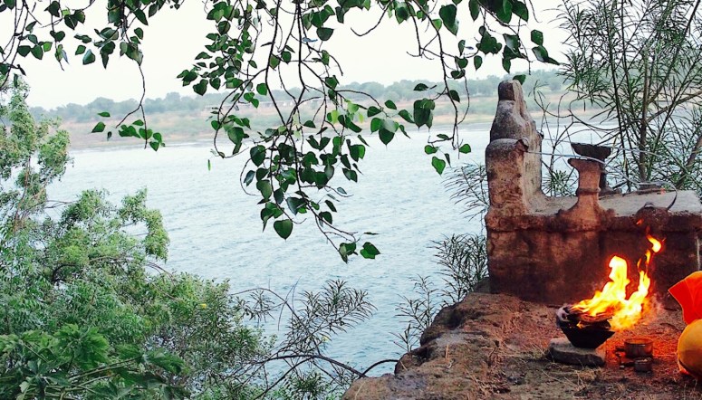 ༺༻ You have found your way here for a reason. Here is a portal to a mystical place, Mahesvar – a major vortex of Shiva-Shakti energy that flows along with life on the Secret Sacred River Narmada, where Nature is Omniscient and Omniscience is within each and every sentient and insentient being. The primitive ways are often the most esoterically advanced. Long before EMFs, our ancestors lived closer ti the Sky (Akash). Here, we intuit and explore, here we gather to remember what we were born to know, that every breathe of fresh air, every stone and handful of dirt, every drop and rivulet of water, every flicker of a flame is sacred and all-knowing. At birth, we are intimately connected to other beings, our Mother, our beloved animal companions, in a way that becomes hidden in the world of Maya. Life on the holy river Narmada is closer to that innocence that lies just beneath thickened skin. When you gaze into this Sacred River, if you take a dip, all outer manifestations of pretense disappear. It is a passive purification, evoked by the gentle high-vibrational electromagnetic forces and the natural piezoelectric crystals present here, at the center of the most sacred Narmada River. As you align your steps with the rhythm where being-ness meets another dimension, gradually, it dissolves the calcified deposits of worldly life, opening the human vehicle to a New Paradigm.